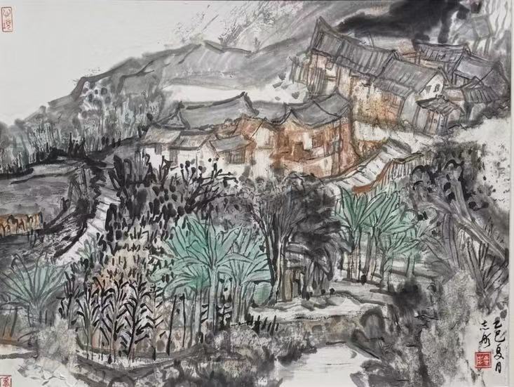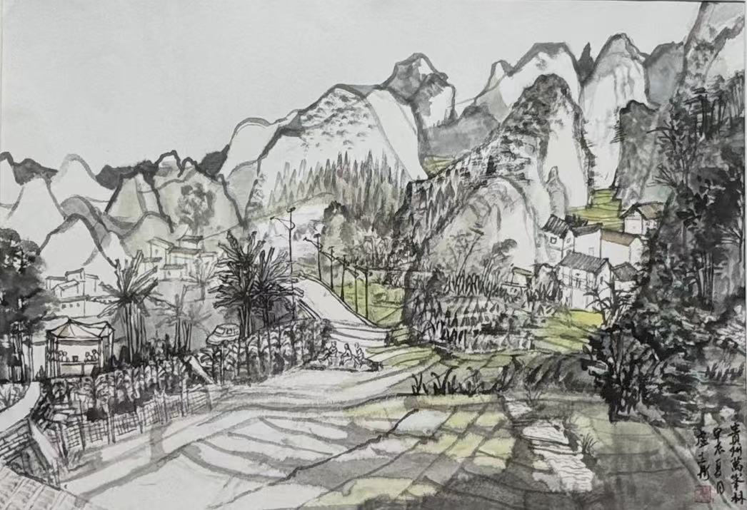 近一年来,我紧随"越过山丘"团队,与方金河、吴克强、杨玉泉等老师流连于木兰溪沿岸,绘绶溪烟柳、东阳古村风貌,摹东岩山秀色、萝苜田古韵,望雁阵塔倚天矗立……我亦随徐珮瑾老师远足,探贵州万峰林的雄奇、漳州东湖村的温婉、山西后沟的厚重。南北风物,各有千秋,写生之路,亦是修行之路。在行走中开阔眼界,在感悟中提升技艺,皆是对自然的赤诚对话。