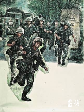 翟书同 《特战神兵》材料:纸本设色 尺寸:176cm×220cm