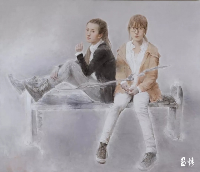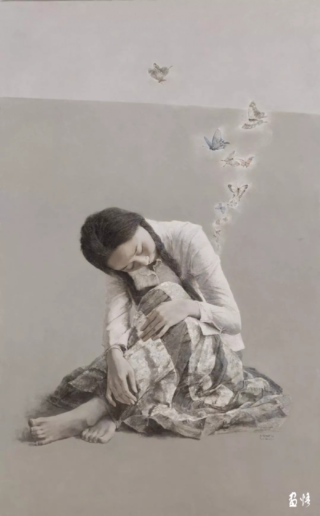 作为一个始终沿着人物写实绘画道路前行的艺术家,刘文很关注形式语言,我们知道,无论选择什么样的主题或试图表达何种观念,都应把形式语言放在第一位,因为形式语言本身既是审美的,同时也承载着观念或隐喻的指向,画家内心深切的感悟、深刻的思想必然要通过艺术语言的色彩、明暗、线条、笔触、质感、光感、空间、构图等多项因素去表现,没有对形式语言高度驾驭的能力,也就无法完美地表达出作者的视觉感受,无法完成存在于形式构造之中的、给人印象深刻的秩序的功能。艺术作品之所以打动人,毫无疑问是形式语言独特的精神气质,历史上伟大的艺术大师都是善于经营艺术语言的大师,如贾克梅蒂、拉斐尔、伦勃朗、维米尔等等。作为一个写实画家,刘文深知形式语言的重要性,小时父亲的严格训练,后来大学的正规教育,加上迷恋写实的内在要求,这些因素使他几十年不受某些风潮、市场的影响,也不因物质生活的贫乏、生活的孤寂而放弃艺术,放弃绘画语言的锤炼,特别是在广州美术学院研修班、研究生班学习期间,他潜心研究人物写实绘画,如饥似渴地从中外的绘画大师作品中吸收营养,并不断地加以实践,《冬日》《凉山彝族•组画》《女孩》《春》是他在广州美术学院学习期间的作品,从中可以看出他在对古典写实绘画形式语言研究上的最初痕迹。