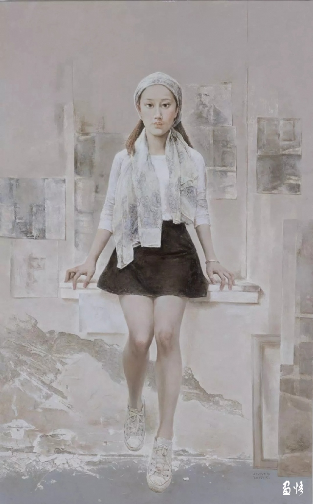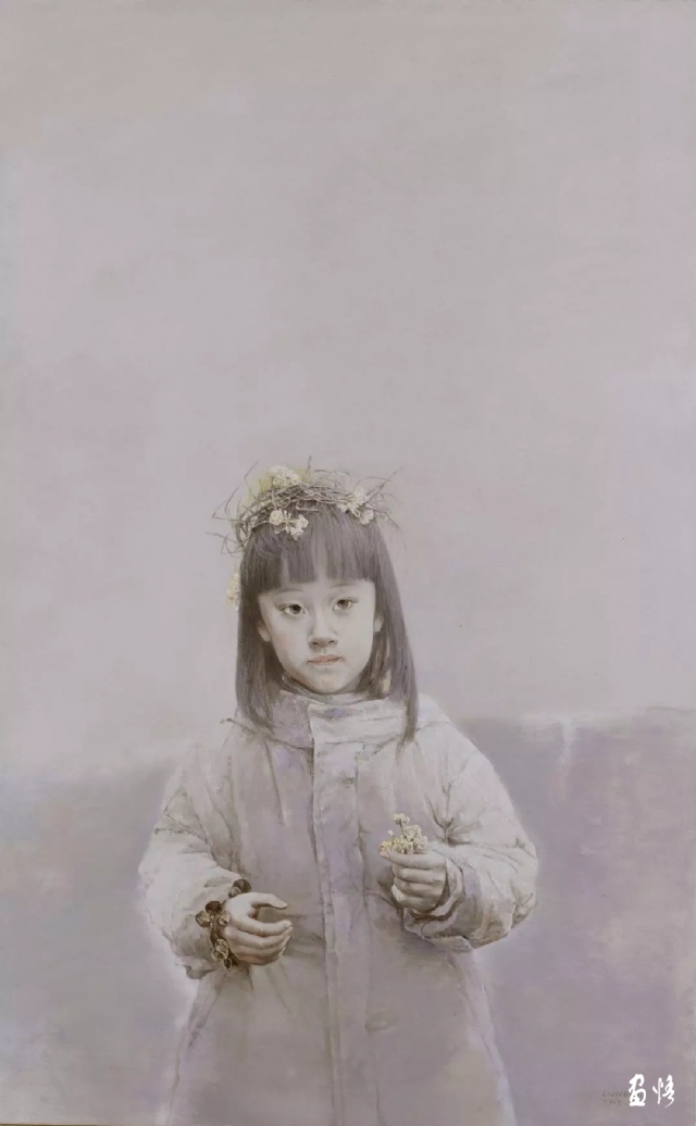 艺术史是一个在传承基础上的创新史,宗白华先生在《中国艺术意境之诞生》中说:“‘温故而知新’却是艺术创造与艺术批评应有的态度。历史每向前一步的进展,往往是伴随着向后一步的探本求源。……文艺复兴追摹着希腊,十九世纪的浪漫主义憧憬着中古。二十世纪的新派且溯源到原始艺术的浑朴天真。”任何一个艺术家都不会仅仅停留在纯摹写传承的层面,在对古典写实语言掌握得比较娴熟时,都会寻求自己的绘画语言风格。刘文在艺术上的追求也体现了这种特点,他多年的苦苦探索,努力追求,最终形成了自己的语言特色,这充分表现在对意象的选择,画面结构的安排,造型节奏的处理及色彩色调和空间层次的把握中。我们从他的《像花儿一样》系列中可以明显感受到,意象的选择是现实生活中清纯的小孩或少女,画面结构采用写实的人物与平面的背景结合,使古典写实绘画三度空间减弱而趋于半平面化,在压缩浅空间里完成画面视觉图形的构筑,线条的虚实处理注重动与静的韵律与和谐,细节刻画典雅精致,色彩的涂抹、揉擦、罩染,形成丰富的肌理,画面构成元素的提纯和扩大运用,增强了视觉的强度和张力,有着独特视觉意味和精神含义,赋于平凡生活场景以温暖隽永的诗意,它标志着刘文的艺术语言走向成熟。