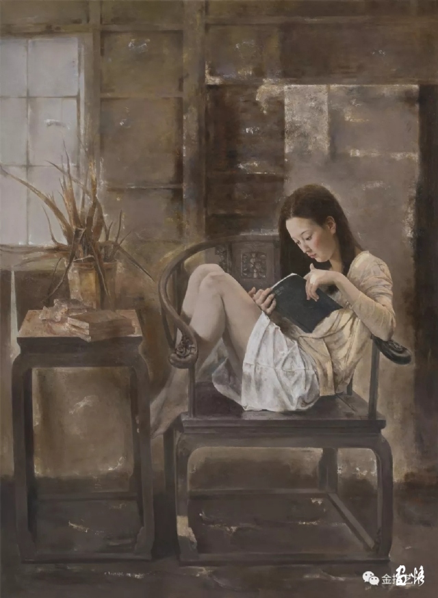 宇宙万物给予我们无穷的创作源泉,围绕艺术家思绪的是如何去选取并有目的地创作,具象写实油画不是对表现对象的简单再现或描摹,它是通过画家对表现对象的思考、经营、创造达到画面视错觉的抽象构建,在不同的场域里显现,从而创造出极具艺术品位的作品。怀揣着对艺术的酷爱与激情,对信念的执着与追寻,刘文在兜兜转转的生活中,学会了舍得、放弃,回到了艺术这个原点,追求自己单纯的艺术世界,坚持具象写实油画的创作,作品深受古典主义绘画浸润,将古典主义元素运用到其绘画中,赋予它新的时代意义,无论人物画还是风景画,无论写生还是创作,严谨、均衡的结构,擦、刮、蹭、扫、拖的肌理质感表现,轮廓线的虚实强弱处理,背景与主体的融合,都为表现厚重而朴素,清新而柔润,含蓄而典雅的艺术效果。作品对视觉表象、不同的因素的处理是画家内心的一种特殊艺术情结,通过画面形式感呈现出戏剧性矛盾空间,挖掘被忽视的、有意味的瞬间,营造沉静、唯美、典雅和充满象征与现实交融的诗意画面。
