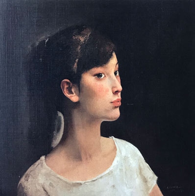 刘 文:参加“油画肖像画创作高端人才培养”项目培训期间,有天的课程是画一位模特女孩。女孩并不漂亮,起初我们没有多大的创作欲望。可是,当我摆弄画架、移动位置时,碰巧抬头看到她侧过身的情态。她回眸的眼神,是那样光彩夺目;她一瞬间的表情,是那样纯美含蓄、摄人心魄。我立即拿起画笔,将捕捉到的美画了下来,取名为《花季》。