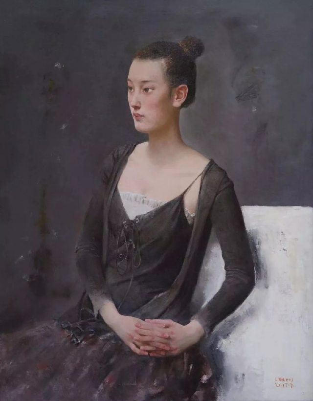 《雨夏》的人物原型是我的妻子和女儿:她们有时像闹山的麻雀,唧唧喳喳欢快嬉闹,脸上“开岀”灿烂的“花朵”;有时莫名地感伤流泪。女性的这种心理和情绪犹如夏日的天空,时而阳光明媚,时而阴云密布。为表现女性这种变化无常的心理和情绪,我选择夏日骤雨将至时这个极富情趣的瞬间作为依托,既与画面氛围和情调相合,又暗示了人物的心理状态.作为“宇宙之精华、万物之灵长”的人,有着千姿百态的变化和丰富的表情,反映出其体型、外貌、生活经历、内心世界等,在某种意义上也折射出时代生活的特质。