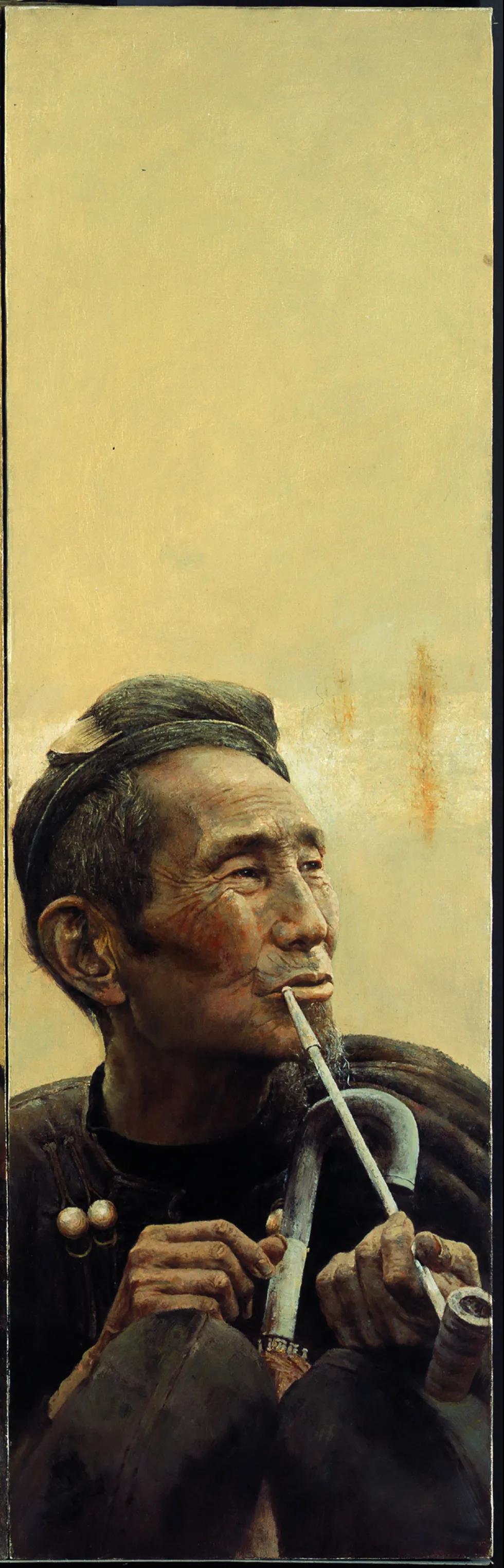 《凉山风情组画》的创作,是我对凉山彝族人生活感受的艺术再现。凉山彝族自治州这块神秘的土地,农人们简单的生活虽敌不过都市的物质丰富,但却有着恬淡、多情、怡然、深情的诗意,我多次进入四川凉山地区感受彝族人的生活,每次都能激发创作冲动,最终选择凉山彝族风情最具特色的火把节的一个真实场面来展示。画面采用组画竖式构图,单个写实的特写人物,彝族特有的服饰,阳光下凉山普通的彝族人,浓郁的暖色调渗透着祥和的氛围,展现凉山彝族人质朴、善良的内心世界,和睦融洽、悠闲自得的生活状态,透射出浓郁的诗意。