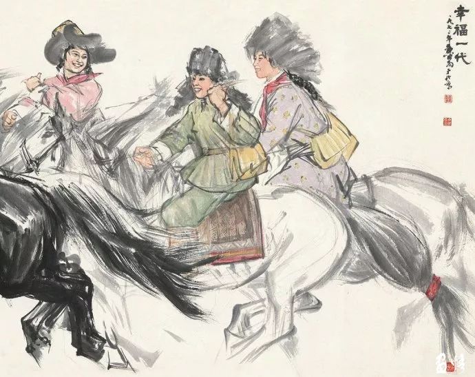 他所画的人物大有狂放原野的情怀和鲜活的个性,一扫传统中国人物画的旧风。最具风情的是那些边疆少女,西方绘画的色彩块面与东方柔美流畅的线条相交融,使他的绘画充满了灵性和神秘的遐思。